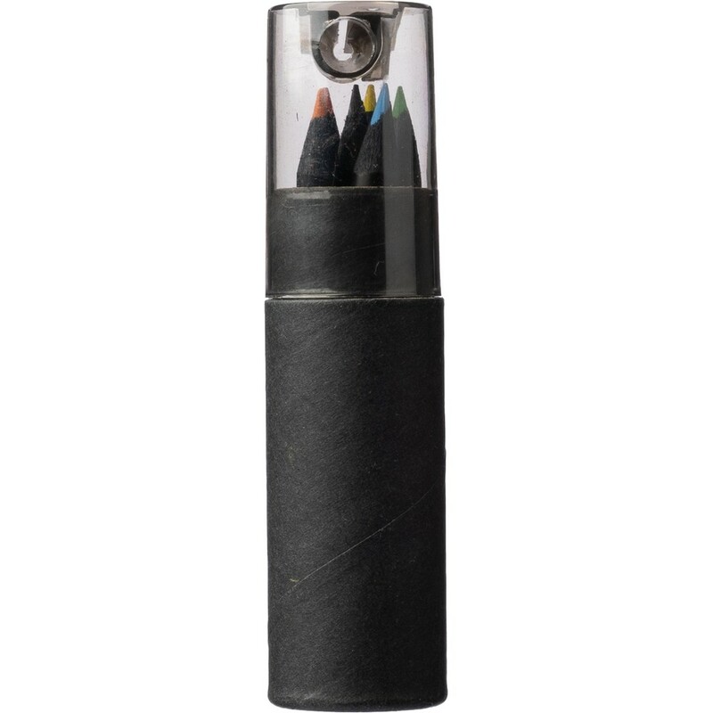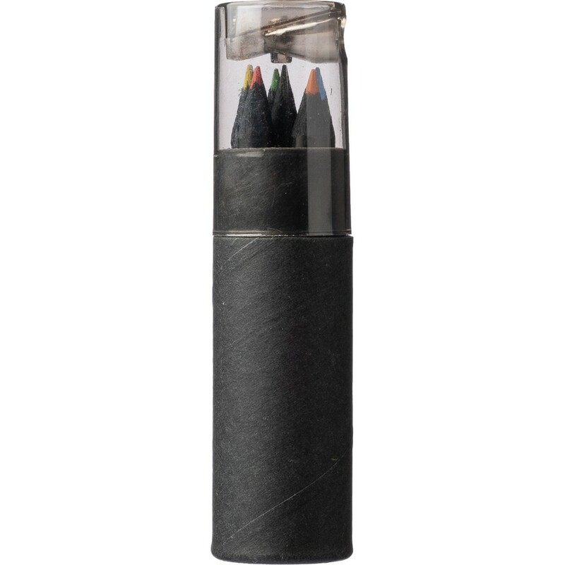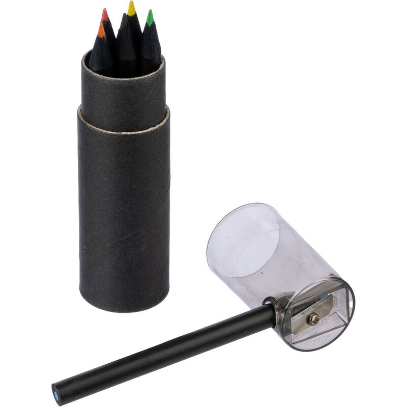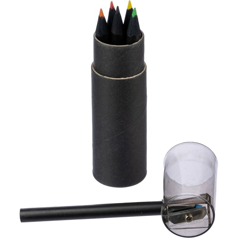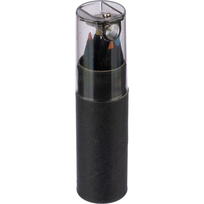 Zestaw zawiera sześć kredek o eleganckim, czarnym trzonie, umieszczonych w okrągłym pudełku Ø12,5 x 10,5 cm, wykonanym z recyklingowanego kartonu i wytrzymałego plastiku ABS. Każda kredka zapewnia gładkie wykonanie linii, idealne do szkicowania, rysowania technicznego oraz artystycznego. Dodatkową zaletą jest zintegrowana temperówka w pokrywie, która zapewnia ostre końcówki kredek w każdej sytuacji, a także ułatwia ich przechowywanie i chroni przed uszkodzeniami.